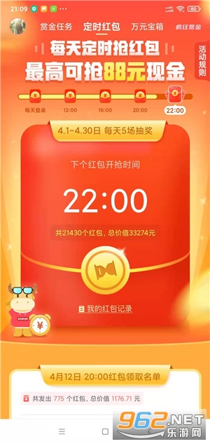 3、每天定时抢红包:每天固定时段可抢现金红包