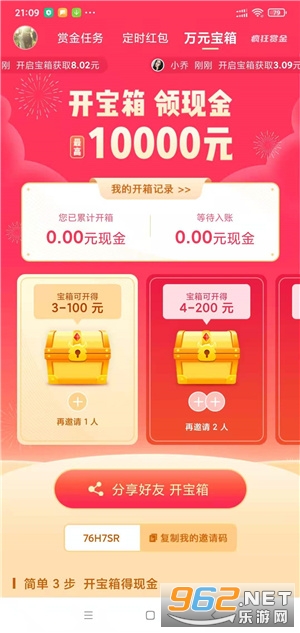 2、开宝箱领现金:开宝箱即可获得现金奖励