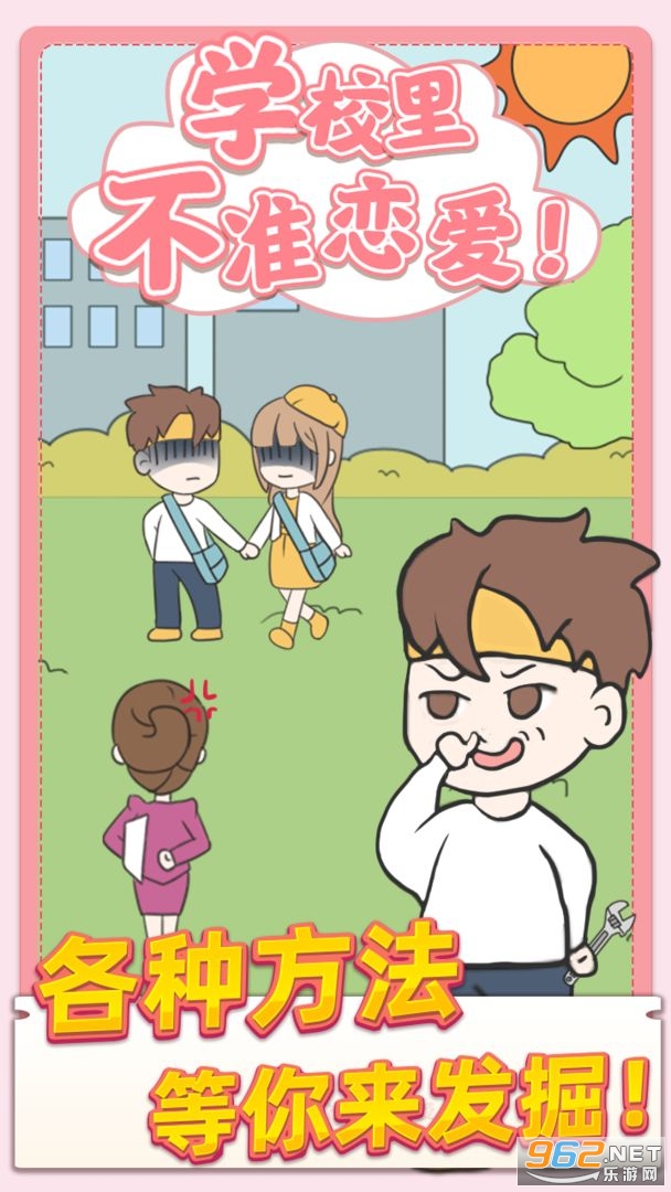 《校园不准恋爱完整版》是一款休闲解谜类游戏,玩家需要在校园里举报拆散所有的情侣,化身fff团去举报他们吧,游戏操作难低,上手十分简单,不过也要小心情侣们的打击报复,小心谨慎的行动吧!还在等什么,喜欢就快来下载吧。