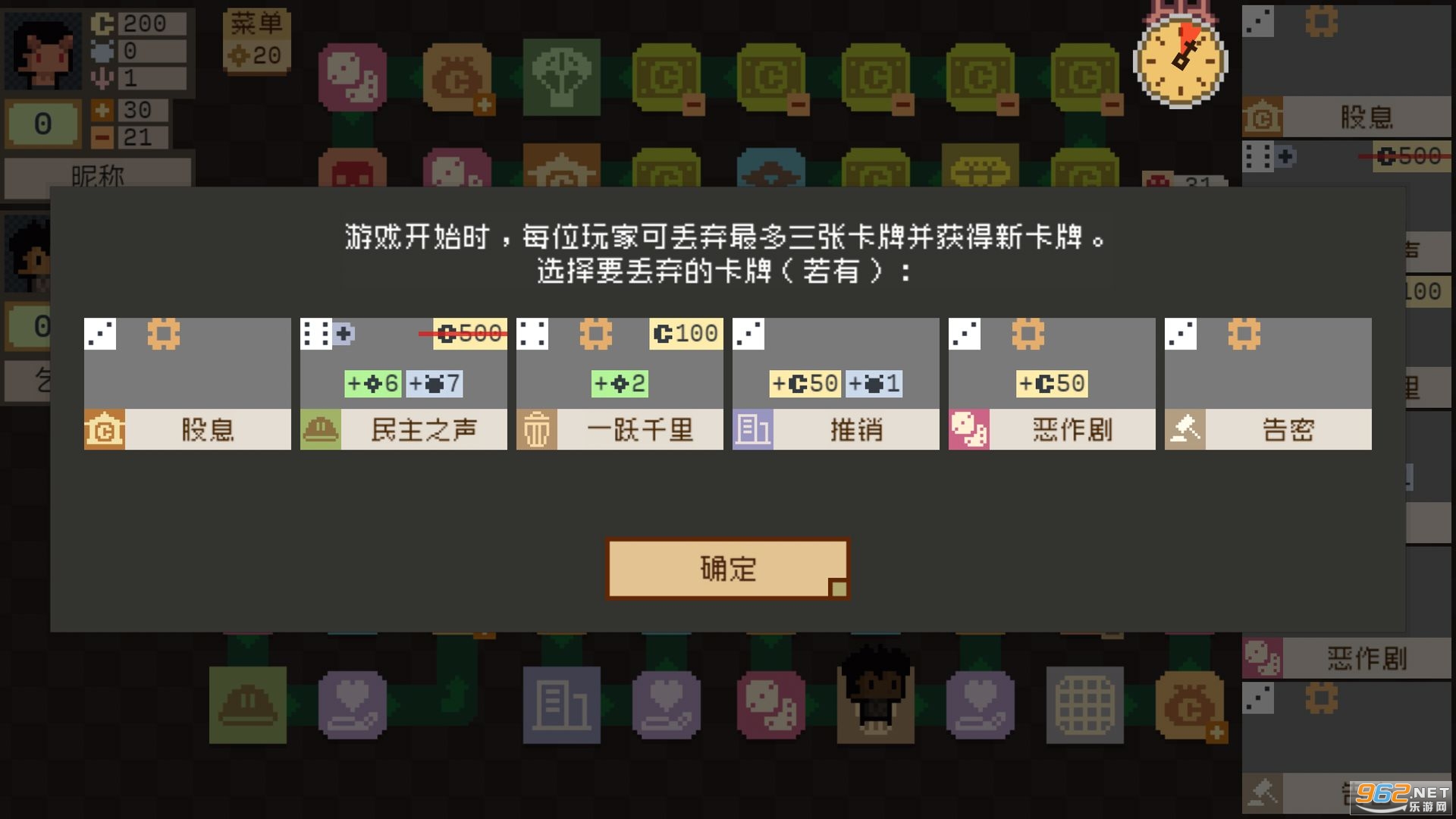 《钟表镇正式版》是一款大富翁类策略游戏,玩家需要选择不同的职业来发展整个钟表镇,通过掷骰子的方式来决定你该发展整个镇子的哪一部分,游戏操作简单易上手,像素的画风也让权力的争夺更加惊险刺激,喜欢就快来下载吧。