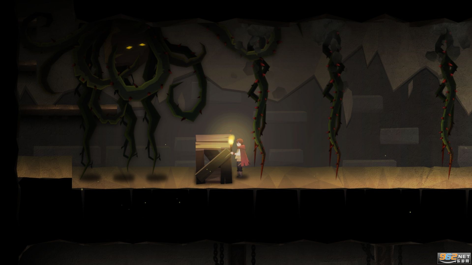 游戏整体的风格偏阴暗一些,在一些场景里,只有主角手中的火把,能够照亮一片区域,其他区域能见度几乎为0,所以会有经常莫名奇妙就掉下去踩到机关上死掉的事情,也正因为场景阴暗,当你捡到黄宝石或者某些遗物的时候,主角手中的火把就会亮一些,照亮的范围会大一些。并不是所有的场景都是昏暗的,这只是其中之一。