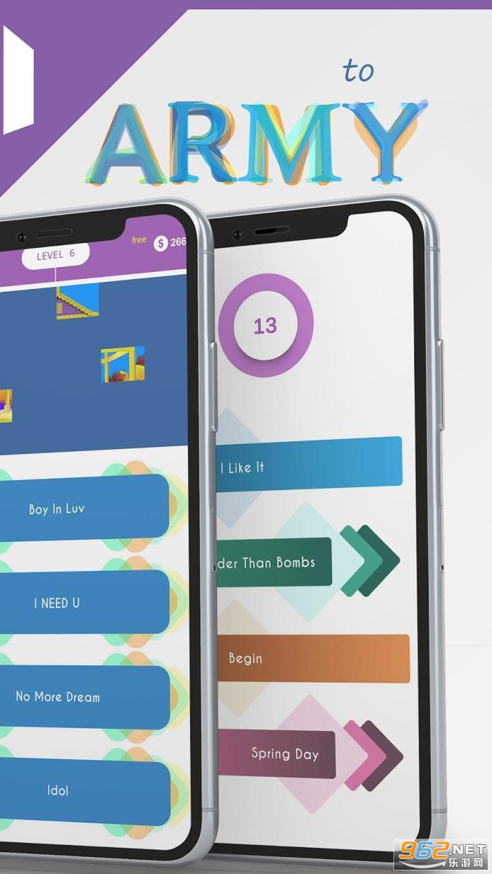 《A.R.M.Y游戏安卓》是一款好玩的音乐游戏,以韩国人气偶像团体BTS为主题打造,玩法包括了偶像养成和音乐竞技等元素,拥有bts从成团开始所有成员的所有歌曲,和大量的写真图片,玩家们可以通过挑战这些歌曲收集喜欢的成员卡片,专为粉丝们打造,快来下载吧!
