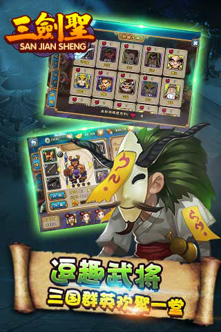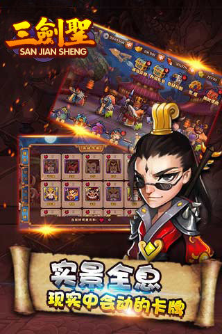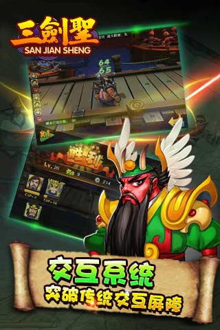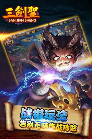 《三剑圣》是3D卡牌战棋策略手游,手游使用卡通渲染的武将模型与3D动作捕捉技术相结合,遵循原著,加入恶搞爆笑剧情;同时,玩法上有别于传统的战棋游戏,以极致的智能操作及运筹帷幄的策略战术,并以3D滑动旋转的视角控制开启了立体式全息战棋策略时代。