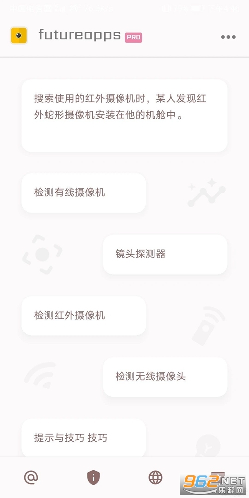 不错的生活软件,对于经常出差的朋友用处比较大,可以检查周围有没有隐藏的摄像头,可以检查有无安全的wifi,保护你的隐私,有需要的朋友可以下载试试。