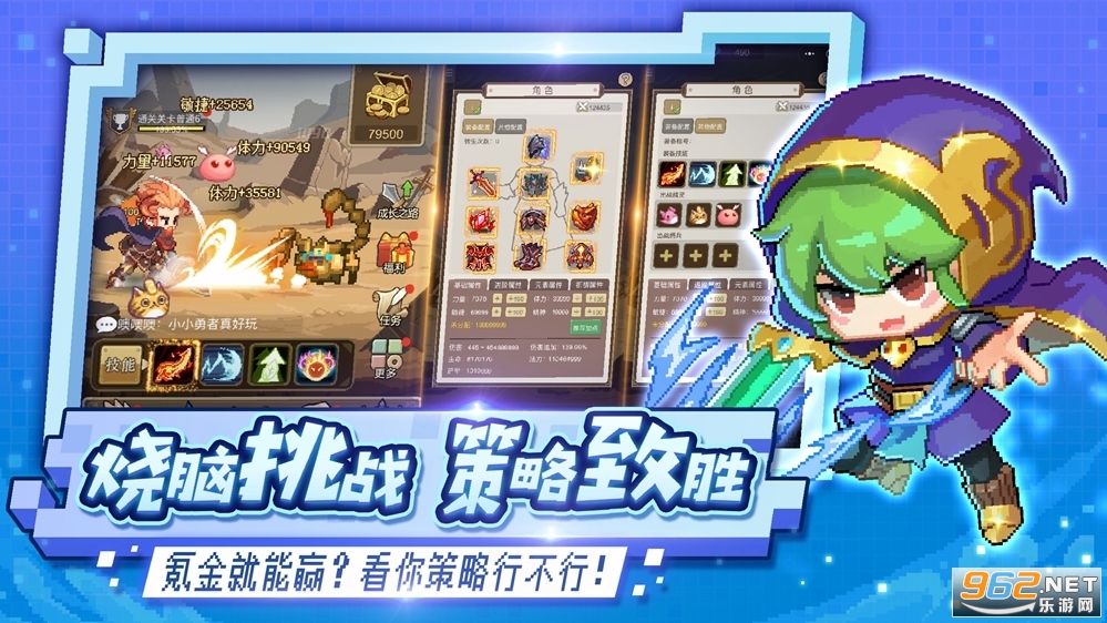 超过20个佣兵、30个精灵可辅助勇者,更有超百件的装备可进行随心搭配,叠加攻击和防御能力。只要你想,你就可以打造出专属于你的特色军团!