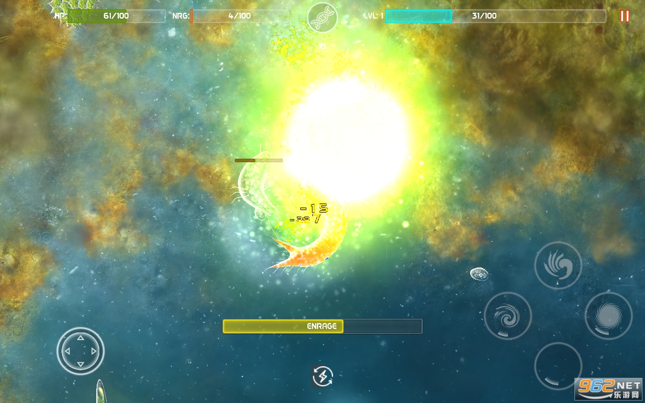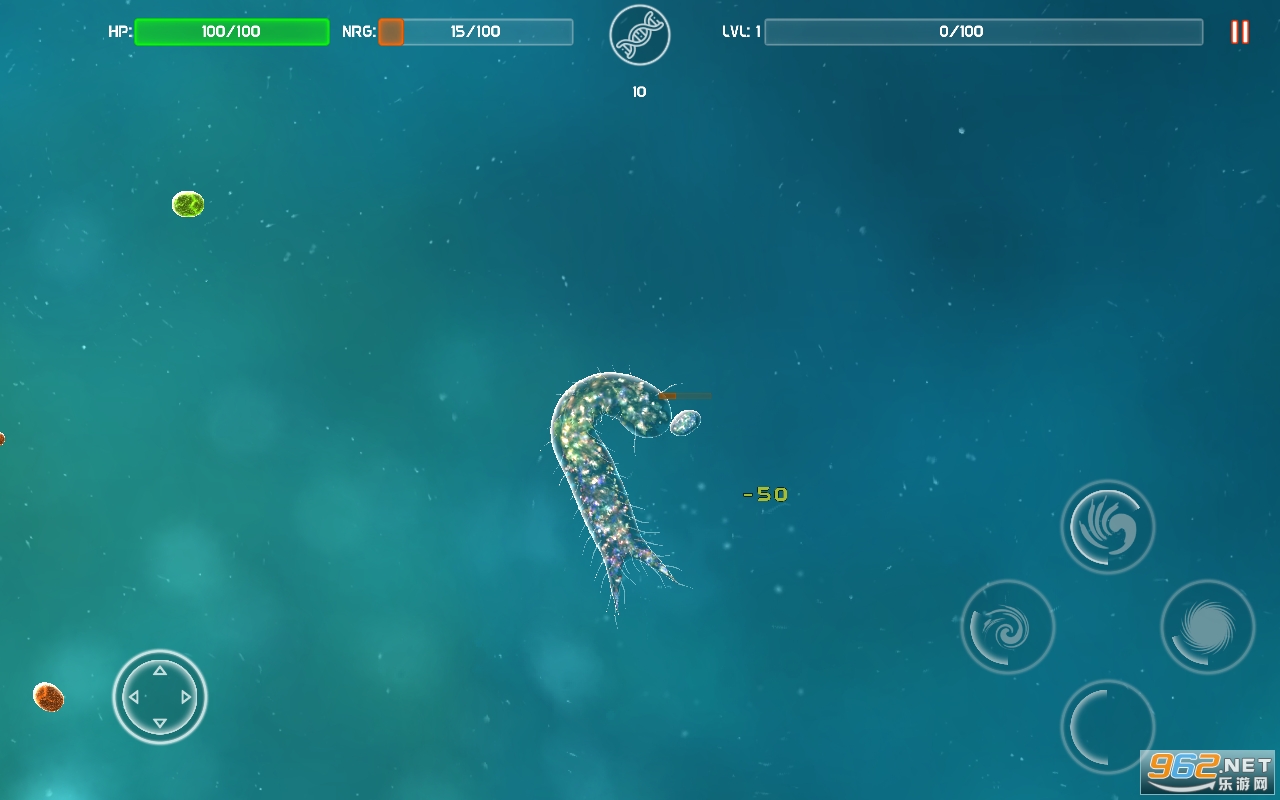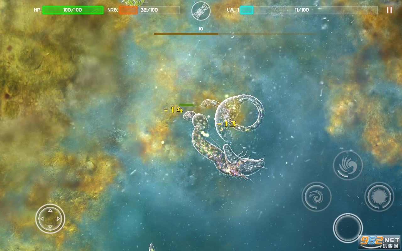 2、打败每一个对手,吞噬它们为自己所用,生长体型,完成生物的进化;