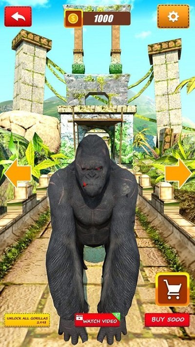 这是一个非常有趣的跑酷类冒险游戏。在游戏中玩家需要控制大猩猩在森林中的一座神庙里进行逃亡,要小心不要被阻碍物绊倒,不然您会失败的,跳跃,移动,向左向右,这需要考验玩家的灵活度,收集更多的香蕉和金币吧,一起下载玩玩吧!