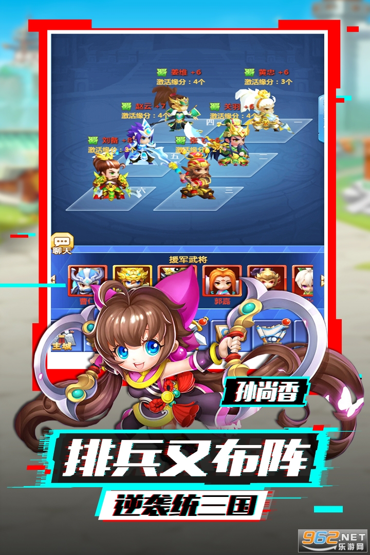 《泡打三国》是一款策略与卡牌相结合的创新三国手游,开局送名将,快速排兵布阵占领先机;挂机送好礼,不耽误时间情感,让您可以轻松畅玩三国。可萌可飒的角色形象,给您不一样的视觉体验,更有武将技能和羁绊合击特效,带您率领千军,征战三国。十面埋伏,三足鼎立,兵法战术,乱世三国,与各路英雄共创大业,问鼎中原霸主。 三国游戏福利: