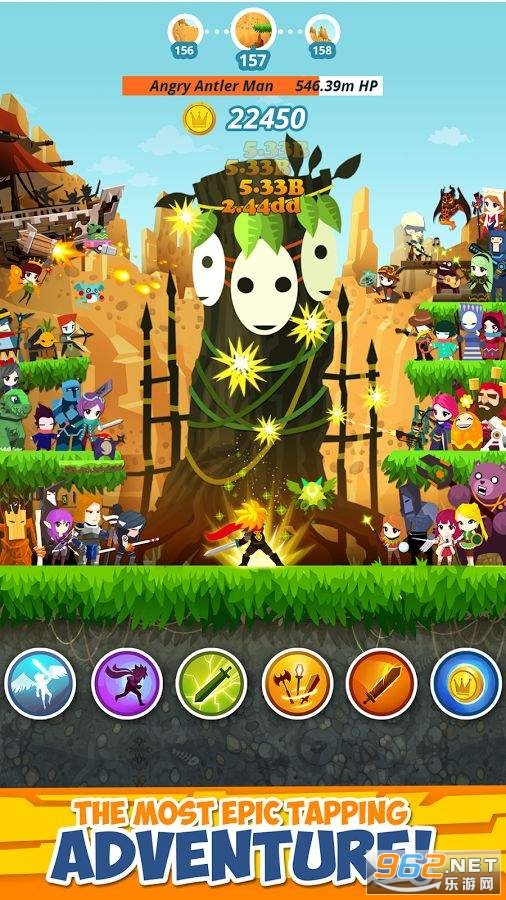 《点杀泰坦 Tap Titans 2》是一款点击类游戏。游戏的操作很简单,玩家点击怪物即可造成伤害。游戏提供丰富的怪物和技能升级系统。作为剑圣来防卫世界的战斗还在持续,但是更多全新的更加危险的巨人们也出现了。你需要用各种方式来增强剑圣的力量来克服巨人们也随之不断加强的力量。解锁强大的技能,收集传奇神器,升级忠实的宠物来为你而战,并雇佣各路英雄组队交战。与其他玩家角逐全球锦标赛来展示你的力量并获得精美的礼品。成立战队并加入势力来打败神圣巨人霸主。收集全新的装备并自定义你的英雄外观和力量来贴合你的游戏风格。巨人们现在回归了,那么现在就拿起你的剑,并开始全新的旅途吧!