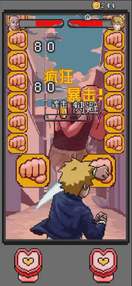 玩家需要点击相应的按键进行攻击和躲避,挑战不同的Boss!连击数越高,得分越高!一个普普通通的学生,通过玩家的不懈努力,逐渐击败学校的那些恶棍!打倒那些流氓混混,保护学校的平和和安宁。