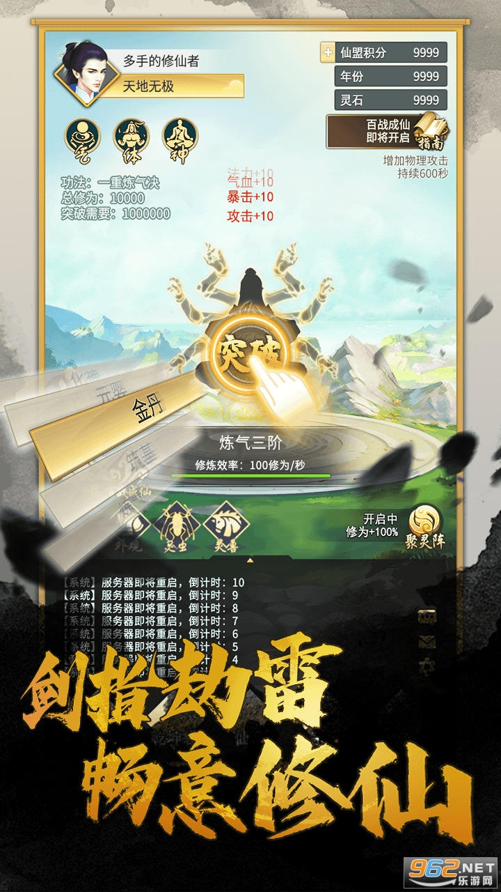 2、设计了五行灵根的进阶突破玩法,在不断的突破中获得更大属性;