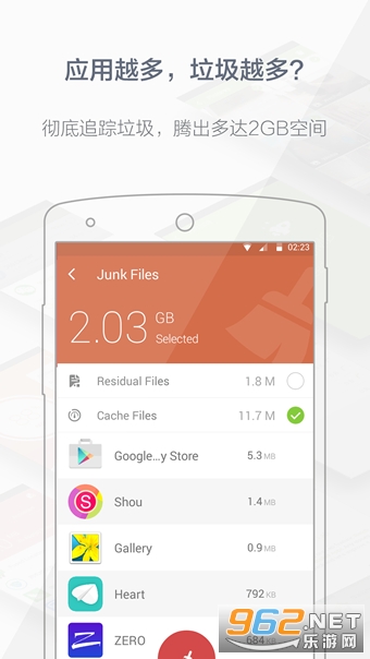 【垃圾清理】强力清理垃圾,解决手机空间不足的问题;