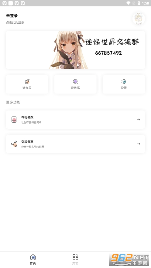 《迷你兔黑科技》是专为迷你世界玩家打造的一款多功能游戏工具。里面有着多种功能让大家可以自由的使用,包括刷迷你豆,查代码,存档修改,交流分享等等,操作超级简单,让你轻松畅玩迷你世界,有需要的话就来下载吧!