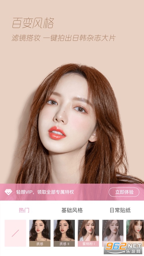 一款自拍相机,拥有时下流行的滤镜和美颜效果。主打“风格”:滤镜+妆,只需一键,你也能轻松get网红小姐姐们的潮流自拍。
