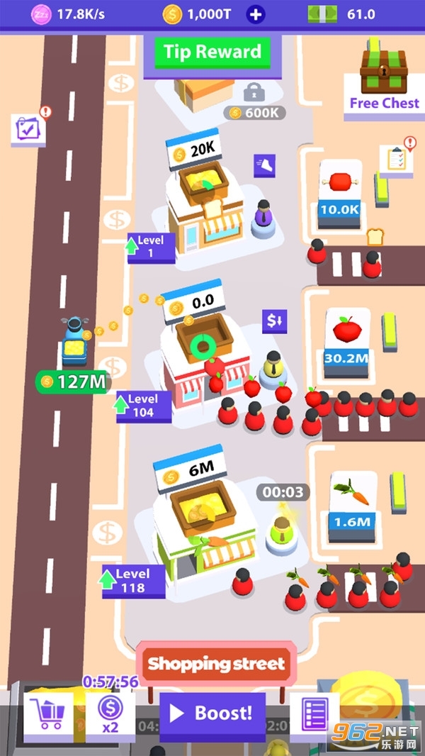 从一家小商店开始,然后将其转变为购物街业务。 建立各种商店。让顾客花钱!! 如果您喜欢闲逛和点击游戏,那么您将享受这款休闲的购物街管理游戏,做出重要的管理决策以建立自己的帝国,并将您的小型购物街转变为世界上最伟大的集市之一!