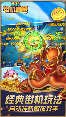 《街机彩狗捕鱼》是一款以捕鱼为题材的手机网络休闲游戏,游戏场景采用全3D制作,各种鱼类游动姿态自然,场景变换丰富多彩,为玩家营造了一个生动的海底狩猎场。全新版本精彩不停~~~~,赶快一起来娱乐吧!更加丰富的玩法和海量的活动,给玩家带来不一样的捕鱼盛宴~~~~