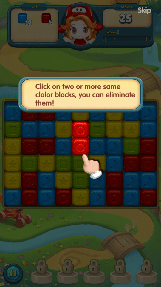 1.注意关卡的要求,在限定的步骤内完成消除任务.