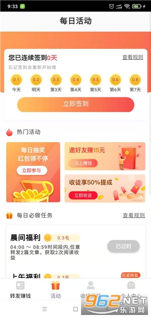 3、真好赚转发平台作为有银子旗下,前期涨分是非常迅猛的,大家可以重点玩一下,另外每天转发收益满5元或者有效收徒一个都可以抽随机红包1-10元