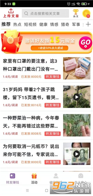 1、新用户 下载注册真好赚app就送1元,转发文章被阅读单价1.6元/次,每天转发满5元还可抽一次奖