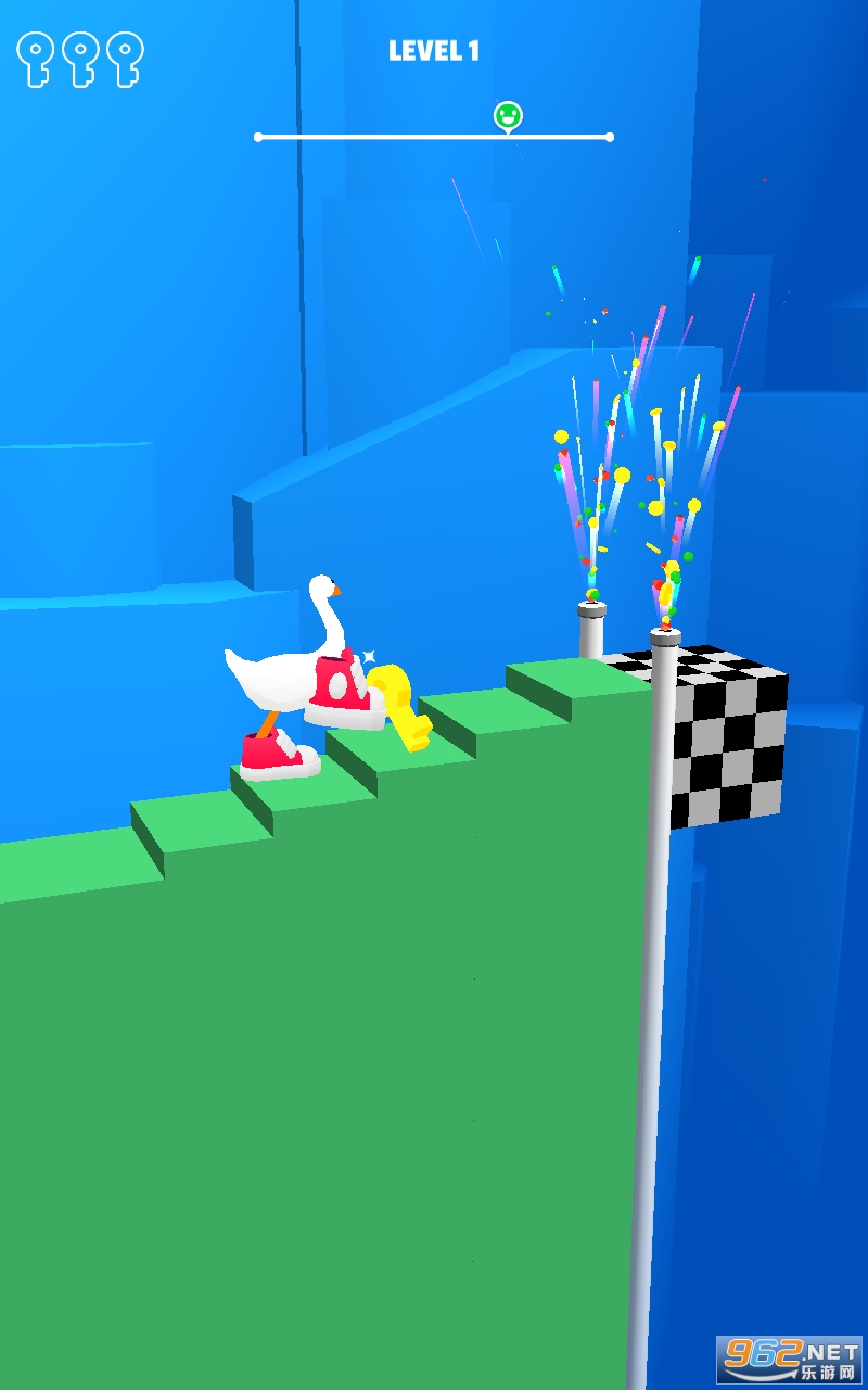 玩家在不同的关卡中灵活操控鹅向着前方的终点冲刺