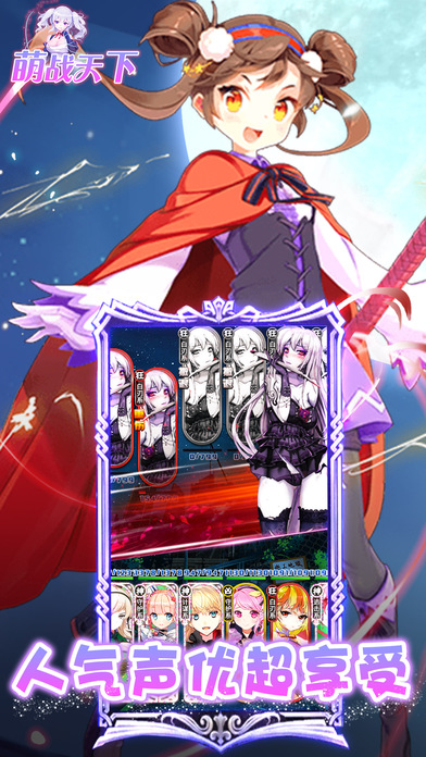 二次元日系策略卡牌对战手游《萌战天下》奉上,次元世界的大冒险,不向黑暗势力低头,你将带领万千萌娘参与拯救世界的行动中,使用炫酷华丽的必杀技打败各种头目,向着光明的远方前进。