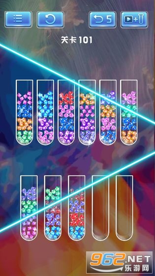分钻大师是一个令人上瘾的益智游戏!试着把瓶子里的彩钻分类,当所有的瓶子都为同一种颜色时即为胜利。这款游戏既有挑战性,又可以锻炼你的大脑。