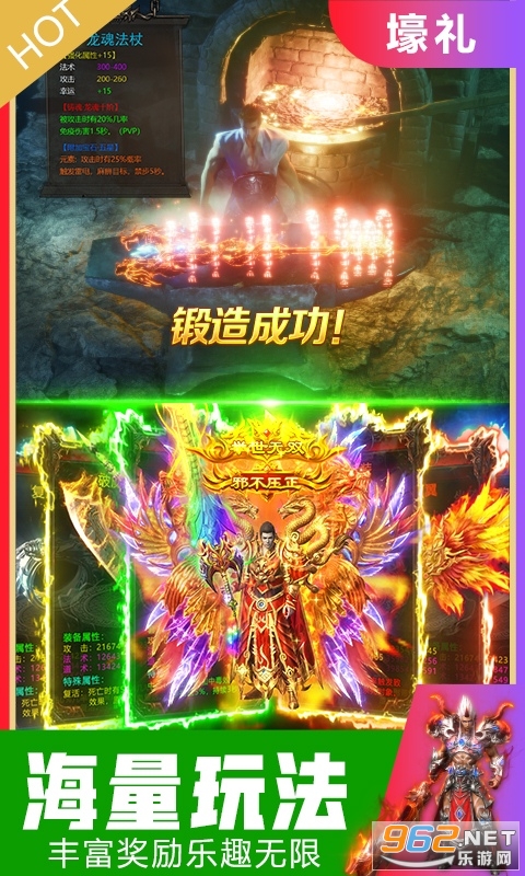 《巅峰传奇》红包版是一款高爆率的游戏,打boss必掉神器,还有各种元宝免费送,上线就送大礼包,充值福利反馈大礼包,打boss简直不要太爽,一刀秒boss,还有各种神器坐骑,炫酷拉风,快来下载体验吧!