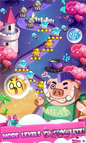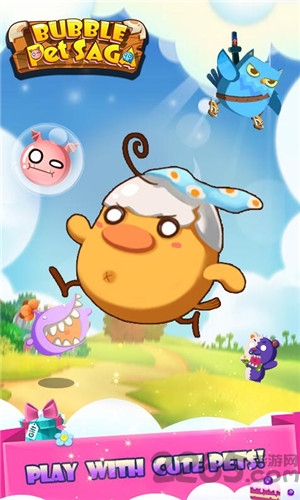 《泡泡宠物传奇》(Bubble Pet Saga)是游戏商Buddy Game旗下的一个消除手游,集结吧!小伙伴们!协力对抗超级大反派,拯救被大魔王绑架的小蛋仔们!