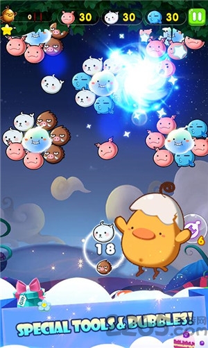 泡泡宠物传奇游戏是一款趣味休闲的泡泡消除游戏,延续了经典的泡泡龙玩法,可爱Q萌的泡泡宠物形象,简单有趣的操作,让你轻松体验到游戏的乐趣,还有许多技能道具供你选用,让你更快通关,获得更高分数。