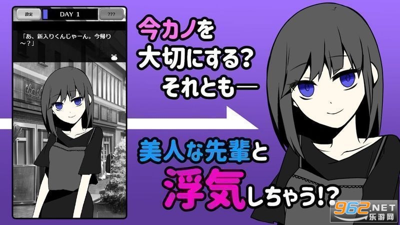 一款非常出色的恋爱模拟游戏,游戏中玩家将体验有趣的剧情,你将在你的女友和美人同事指尖来回移动,游戏中有着非常多的选项,不同的选项有着不同的结局,你能够成功的扮演一名渣男吗?