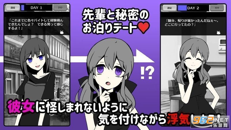 不要被女友抓到你出轨是一款日系的恋爱冒险游戏,这款游戏以文字剧情为主,在游戏中我们的玩家是成为一名会出轨的男朋友,自古以来出轨的人都是会被人看不起的,所以玩家需要小心的保护好自己的小秘密,面对女友的质疑,玩家需要想出合格的理由来对付她,让自己的女友打消怀疑,十分的刺激有趣,感兴趣的小伙伴快来下载体验哦。
