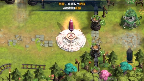 1、游戏只有一个目标,冲破地方的防线,摧毁敌军基地水晶即可,多人同屏竞技;