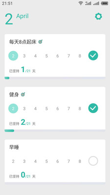 一款简洁高效的目标打卡APP,给自己定3个目标,用21天养成好习惯。