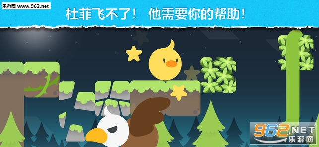 因为他不会飞,杜菲必须从一个街区跳到另个区域穿过一个满是棘手的障碍和恐怖的敌人的森林。 虽然跳跃很累! 杜菲跳的越高用的力气也更多,但完美的跳跃可以帮助杜菲恢复健康和赚取额外的硬币。 使用你收集的硬币解锁具有特殊力量的新服装! 玩故事模式,帮助杜菲找到回家的路,或者在挑战模式中解锁无尽的关卡,争取成为树林的冠军!