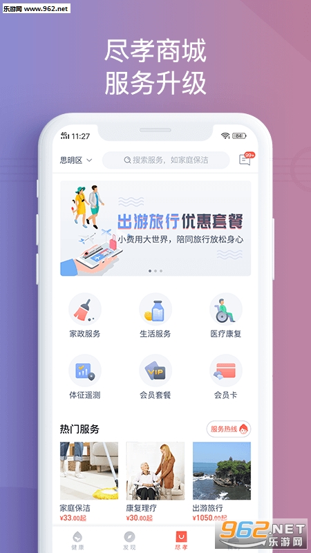 欢孝APP,向您提供便捷、优质、可靠的本地生活服务及健康购物。 找阿姨,维修、保洁等家政服务,上门保健推拿,陪医送药等健康医疗服务,购买健康套餐,监测仪器等 。