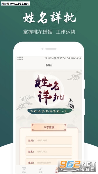 《龙凤起名取名安卓版》是帮助使用者解决取名问题的绝佳帮手,根据你所输入的信息会有专业大师帮你取名,绝对让你满意,而且软件还附带了签名功能,私人签名定制任选你喜欢的风格。