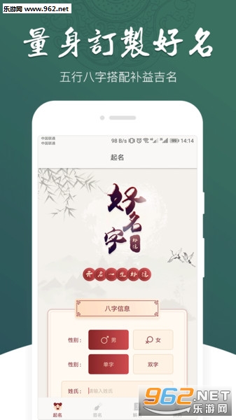 名字一直以来是中国人很关注的一个话题,特别给孩子取名的时候往往一家人容易争执不下,这款软件从大师的角度来帮你解决这个,量身定制好名;