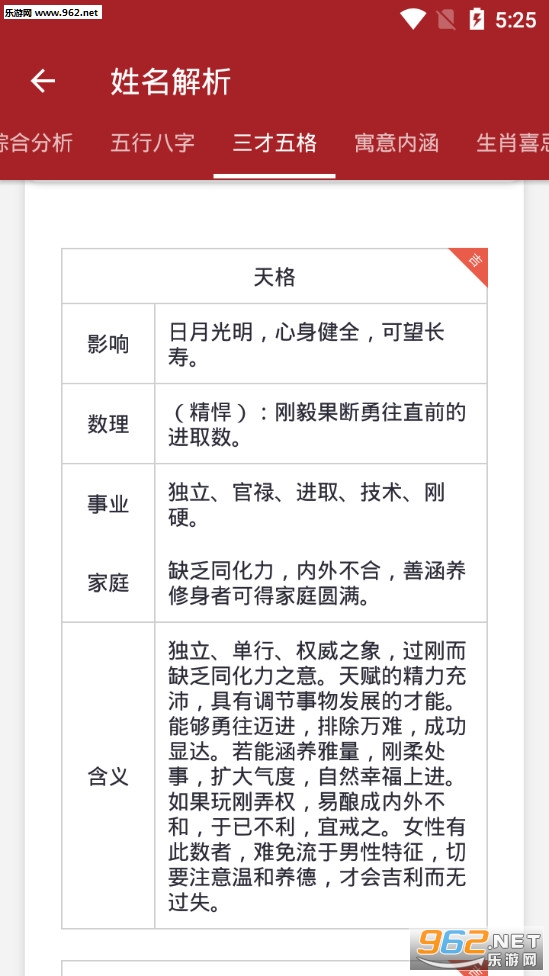 2.解名:结合三才五格,八字五行,周易卦象,生肖喜忌,音形意韵,全方面详细解释,让你了解名字背后的寓意。
