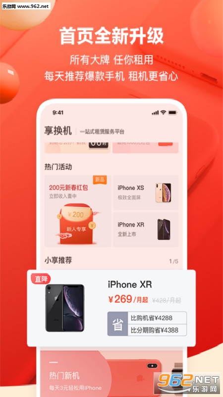 《享换机安卓版》是一个手机租赁平台,专门为用户提供专业的手机租赁服务。这里拥有全球各种品牌智能手机,各种款型应有尽有,用户可以租赁任意手机,月付租金,年年都能换新手机,而且,可以使用花呗、信用卡额度抵扣押金,无需支付现金,重要的是,如果你的芝麻积分达到600分则能免押金,直接拿机,方便实惠。这里的手机机型丰富,华为、苹果、小米、三星、OPPO、VIVO等一应俱全,能够满足多样化的需求,而且,手机租赁期间免费维修,为你提供完善售后服务,感兴趣的话马上下载吧。