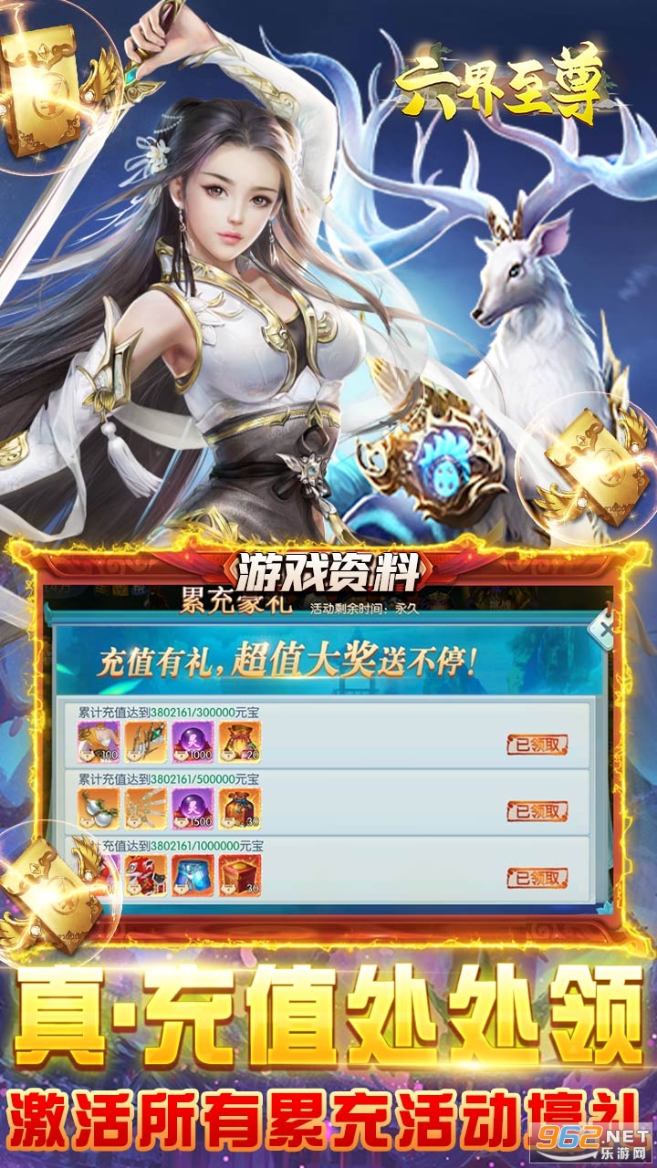 六界至尊(1元送百充)是一款超精美3DMMORPG仙侠手游,天天1元送百元真·充值卡福利来袭! 船新GM版本,创角免费送GM,极品道具1元宝无限购,新增无限资源阁,一次购买永久无限领! 开局领1000真·充值卡(激活所有累充活动),再送全套橙装,天天无限领真·充值卡,无限十连抽、无限进阶丹免费送! 逍遥自在的仙侠世界,特色玩法神仙眷侣,华丽百变时装,万人激战BOSS,激情PVP玩法,带来开挂般的的仙侠恢宏体验!我欲封天,邀你来战!