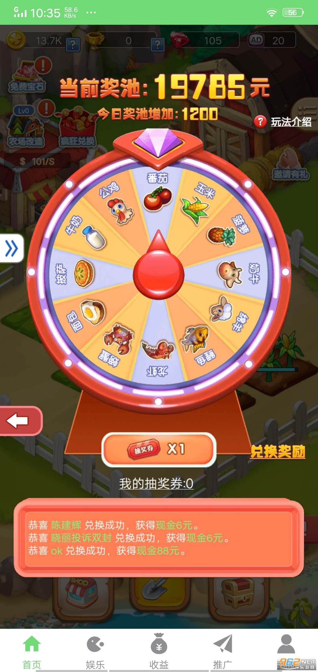 3、三块地、27块田都由你来经营,从地块田开始,块块拿红包,还有抽奖赢现金;