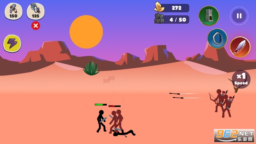 2、带领火柴人军队开采黄金和资源,学习战斗技能,去对抗敌人,获取极致爽快的战斗感。