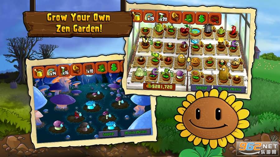 3、自由搭配数十种植物,把植物种在花园的不同地方,对抗僵尸王还是需要战斗力彪悍的植物。