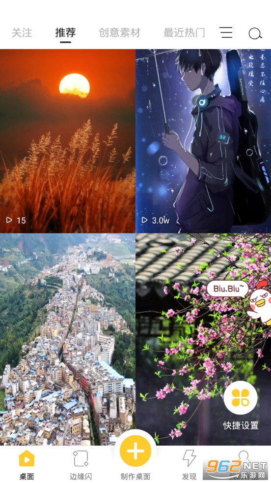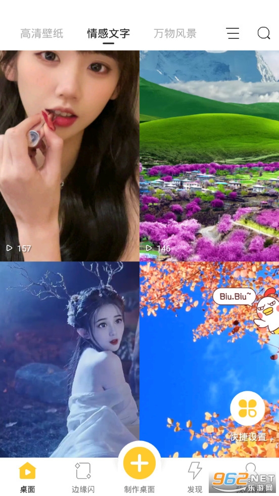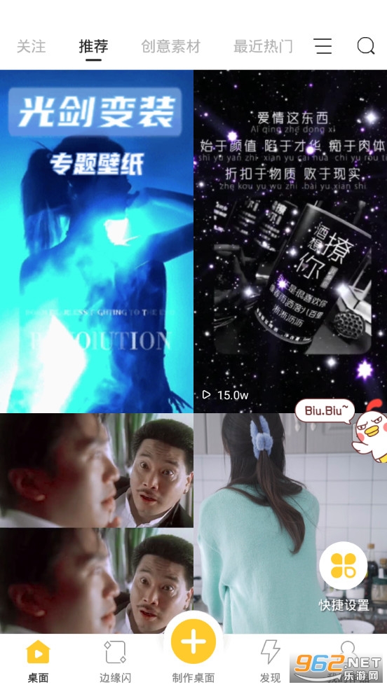 Biu视频桌面:是一款集合了视频动态壁纸、3D桌面、来电视频、QQ透明主题、全局透明壁纸等多种桌面美化功能手机桌面美化软件。