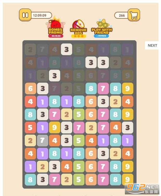 在绚烂多彩的方格当中寻找相同的数字,快来点点方块干掉它们。