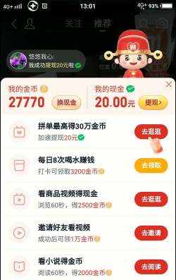 追看视频满1元即可提现到或支付宝,1920金币=1元