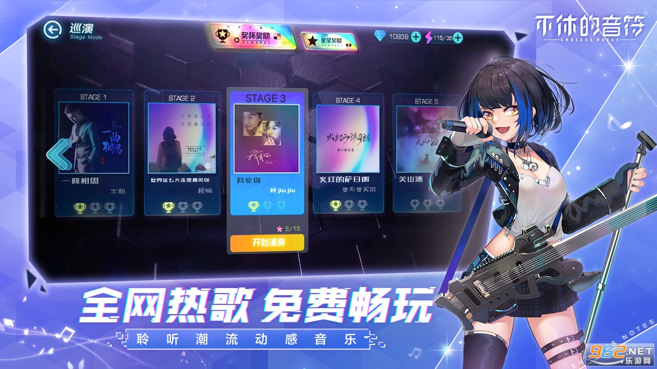游戏网罗全网热门歌曲,内容涉及不同风格品类的同时兼顾玩家的审美需要。与此同时,游戏内所有歌曲均取得正版授权。随着游戏的迭代,歌曲也会定期增加以满足玩家对游戏的期待。