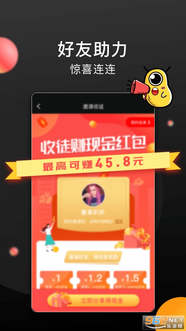1、用户能够去邀请自己的好友来下载软件,邀请的好友越多的话获得的红包也就会更多的。