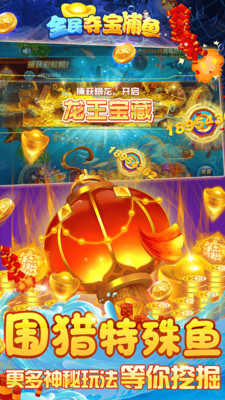 《全民夺宝捕鱼》让各位玩家们在这款全民夺宝捕鱼游戏中可以享受好玩趣味的线上捕鱼游戏平台,全民夺宝捕鱼让大家在这里轻松开启捕鱼福利,让各位玩家们可以来享受到更加好玩趣味的线上捕鱼冒险,海底各种宝物等着大家前来夺取喔!