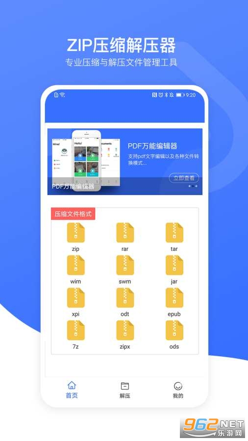 zip压缩解压器是一款专业的压缩与解压文件管理工具,zip压缩管理器可以打开压缩文件格式有:Rar,Zip,7z,bz2,bzip2,taz,gz,gzip,tar,支持压缩成zip文件。